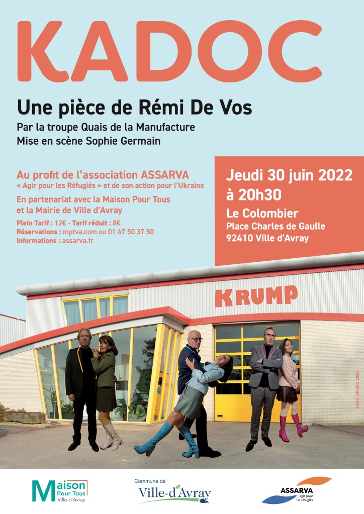En partenariat avec la Maison Pour Tous et la Mairie de Ville d’Avray, la troupe de comédiens Quais de la Manufacture se mobilise à nos côtés en dédiant sa première représentation à notre action en faveur des réfugiés ukrainiens :
